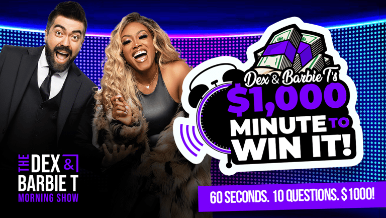 Listen for Dex & Barbie T’s Thousand Dollar Minute every weekday morning! Answer all 10 questions correctly in one-minute and you’ll win $1,000*!! If you’re up for the challenge, fill out the form below and Dex & Barbie T will call you when it’s your turn to play…